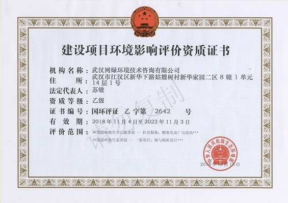 • 建設(shè)項目環(huán)境影響評價乙級資質(zhì)