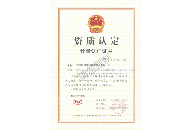 • 資質(zhì)認定計量認證證書